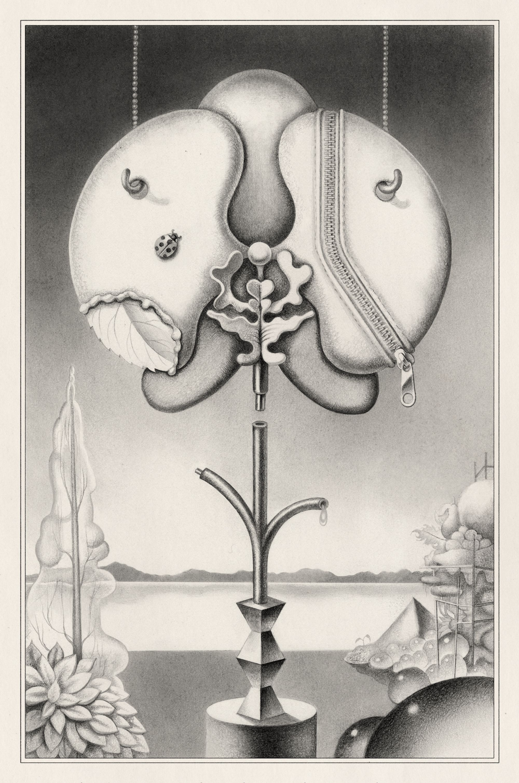This sculptureâs likeness to a penis may be mere coincidence, but I was fascinated by the sexual duality embodied by this object. I again encountered this kind of duality in orchids, which contain both male and female sex organs. For Rachelâs final chapter, I wanted to construct an image that also embodied this dualityâa monument to our shared anatomy.