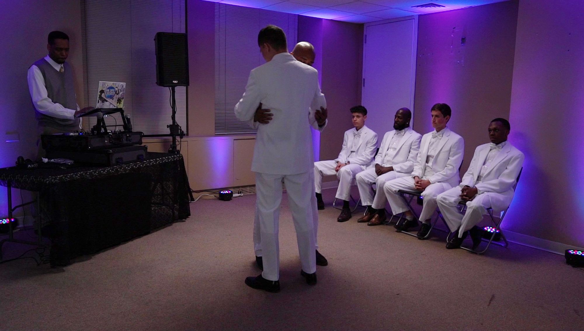 For the past five years, my projects have revolved around working with small groups of men in staged but improvised situations. Iâve asked them to participate in activities that explored how ritual can both reinforce and re-imagine their social roles. A previous work, Breakfast in Bed (2016), assembled a group of strangers to participate in a mock men's social club, where they engaged in a variety of games, speaking exercises and other (often very silly) physical actsâall of which called into question the limited space for male performance within groups. Another project, All of M (2019), used the high school prom as the vehicle to examine both ritual's role in forming male identity and the physical trappings that create these moments of homosocial belonging.
