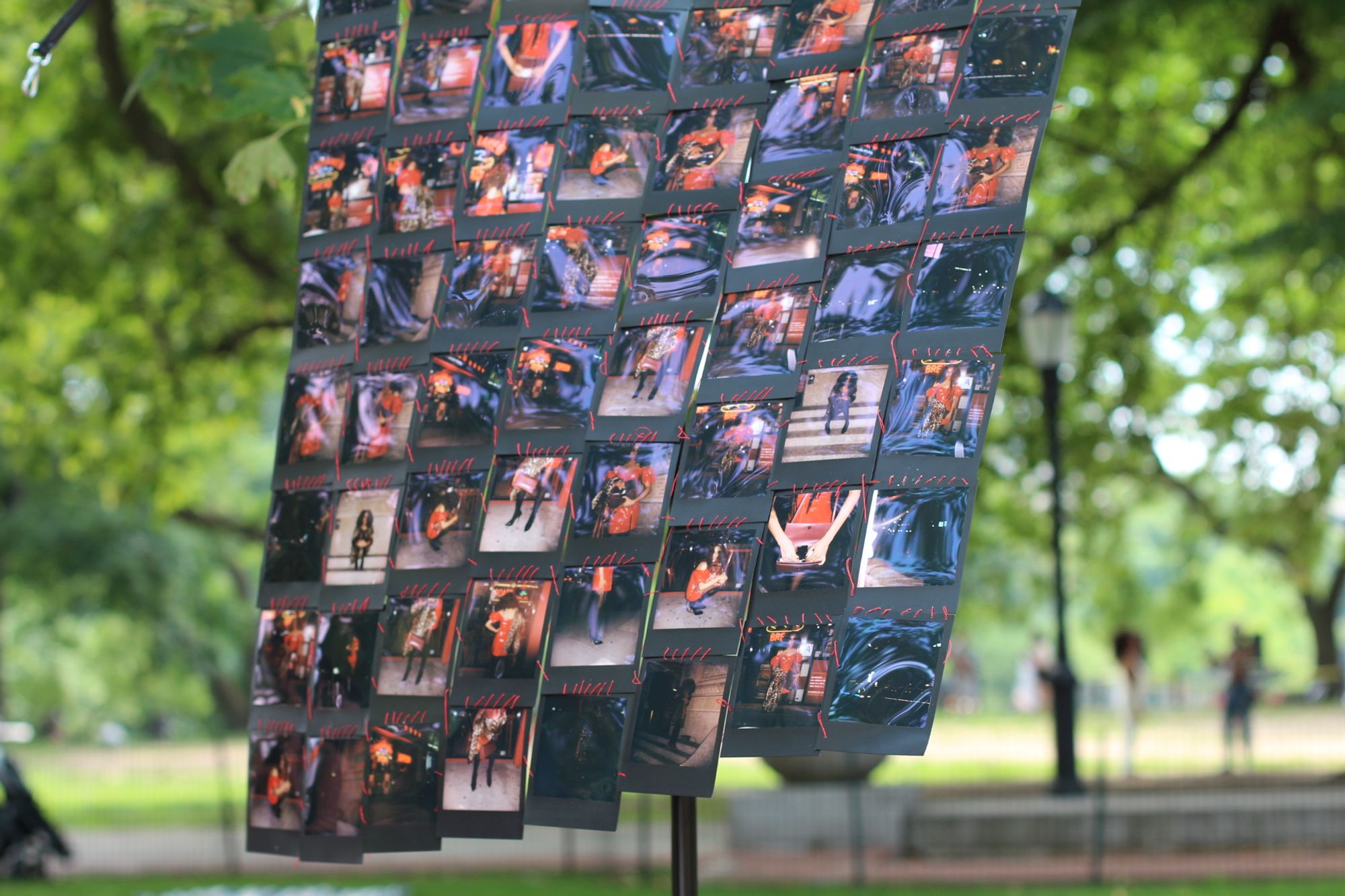 If the anti-emancipatory gaze of surveillance permeates images of sex work, the task then, is to search for or create counter-visual images. Drawing upon my own experience in various sex industries, my scholarly and artistic practice seeks to uncover how systems intersect to target sex workers of color, specifically Black femmes. In Solicitations of Crimes Against Nature (2021), I depict myself in a series of Polaroids to dramatize the gaze of what an arresting officer may consider as visual evidence of a sex worker (or “nightwalker,” as termed by many laws). Referencing the five states (California, Denver, Massachusetts, New York, and Texas) with laws that prohibit the solicitation of sex, the Polaroid quilt evokes the ambiguous zone between someone soliciting sexual services and a woman walking alone at night. Any one of the images could be interpreted as a femme having a night out, with personal belongings such as a phone, contraceptives, or abortive pills. However, these objects could be used against me. In fact, since many laws punish the solicitation rather than the act and exchange of services, one simply only has to look like they are selling sex to be arrested.