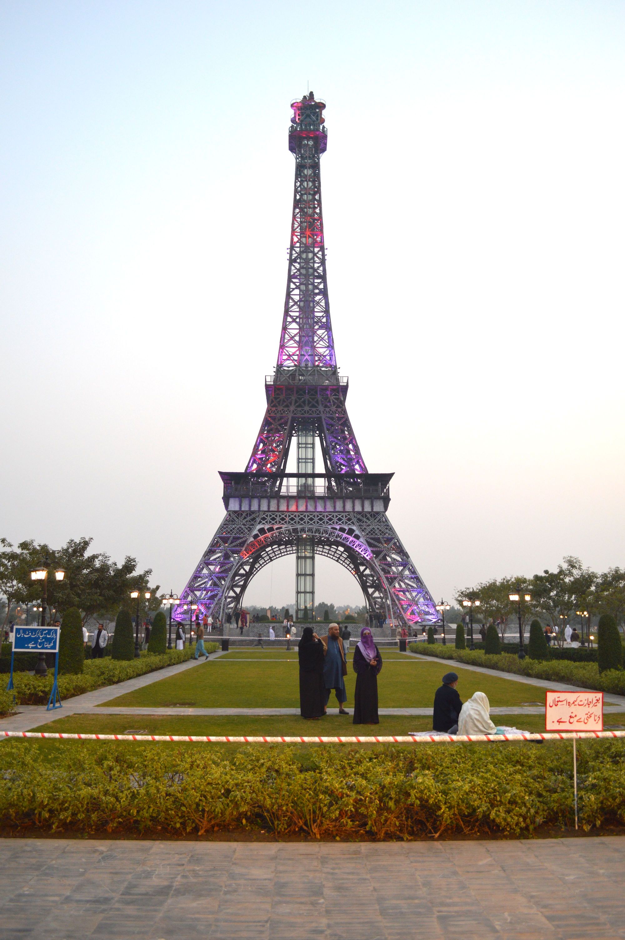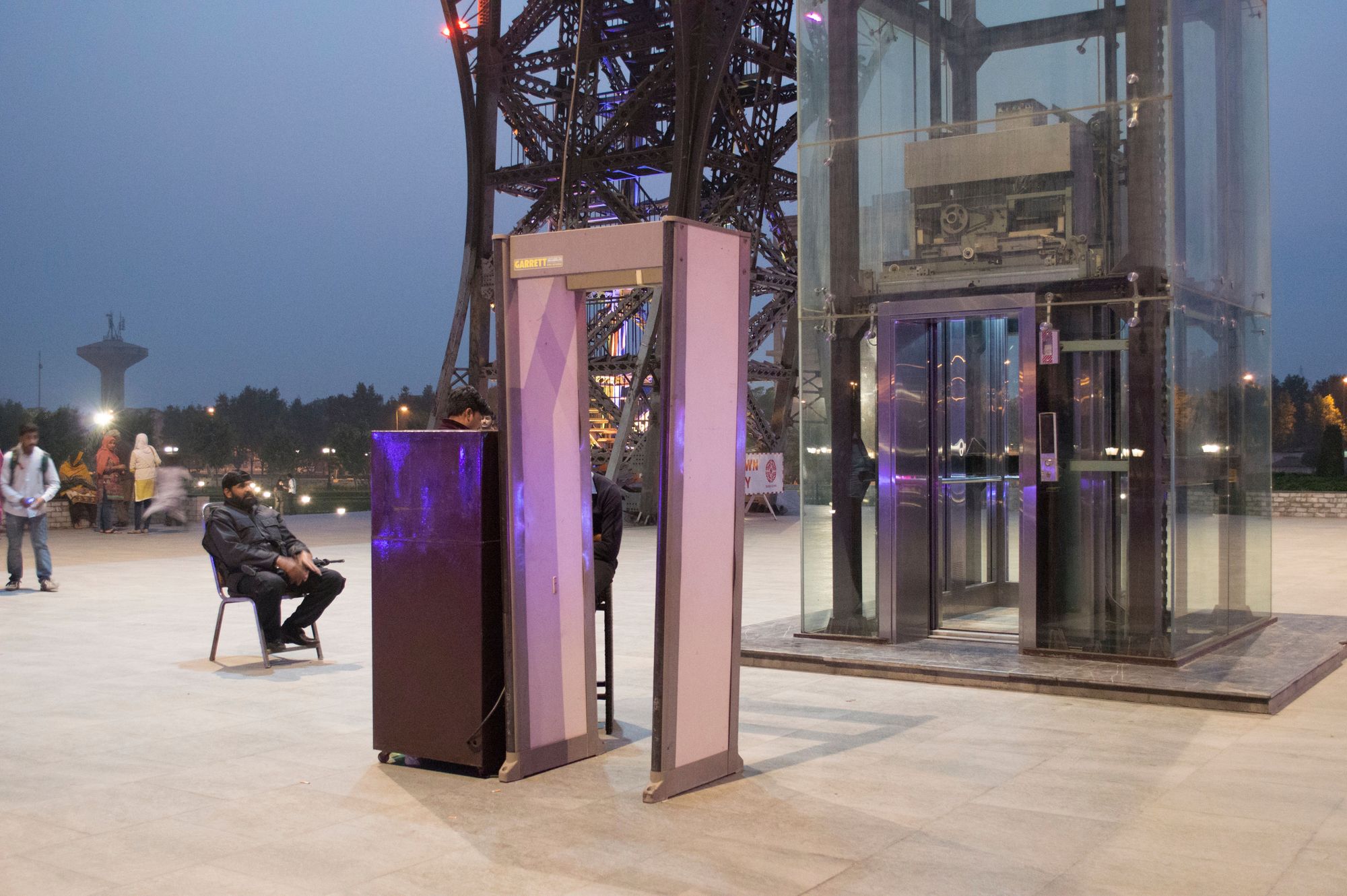 Bahria Town is a real-estate development company which has owned, developed, and managed gated properties across Pakistan since the early 2000s. Combining its various housing projects in major Pakistani metropolitan cities, the company has the capacity to house over a million upper-middle-class and high-income people. These communities have private security (and the ability to restrict access to non-residents) and their energy is independent from the national grid. Bahria Town Lahore offers simulations of modernist icons from other times: the Eiffel Tower, Trafalgar Square, and others, with the touch of Islamic ideals.