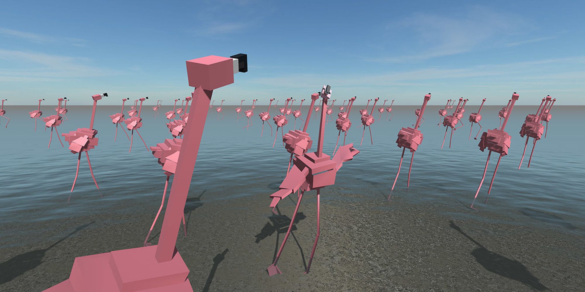 “Dance with flARmingos” is a Mixed Reality experience that features a multispecies dance between humans and flamingos, and pays homage to the flamingo—a consummate showman and embattled victim of environmental neglect—by staging kinship from an ethical distance. Kristin Lucas believes this is an exercise in going beyond a human-centered worldview into a more fluid ecological discourse, through the use of technological embodiment and sensory play.